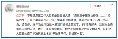 这件事一出,在万科地产松了一口气的业主,就开始顺带吐槽。有人@万科,能解决拖了两年的泡水问题吗?
