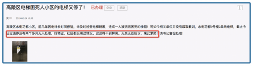 但就在大家都以为物业会吸取教训的时候,同小区的电梯又停了,一旦再停一个月,居民们就别无选择,只能去政府的留言板求助。
