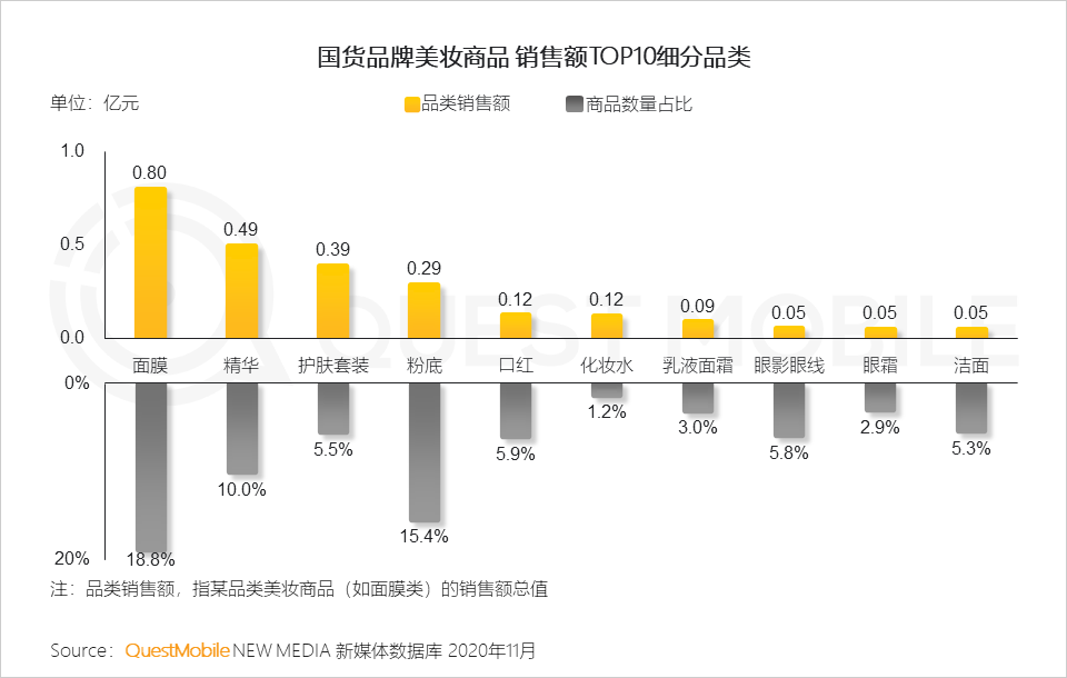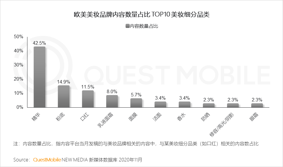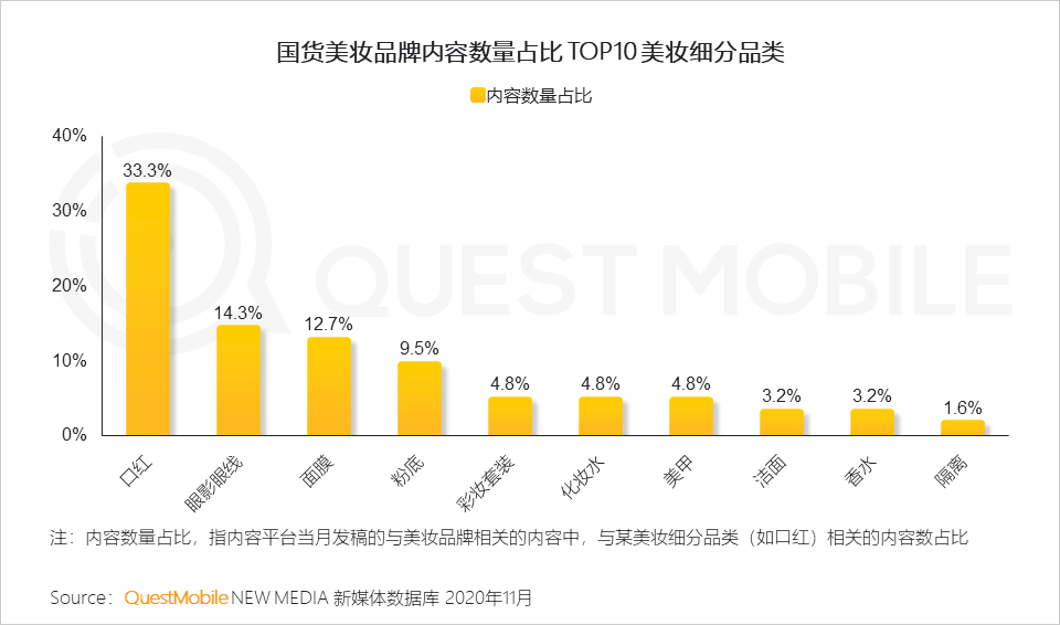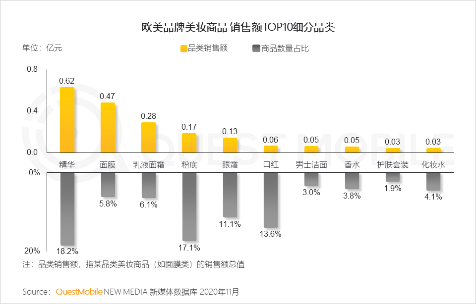4.口红是国产品牌推广的重点品类,也是最有竞争力的品类;欧美品牌在精华液和彩妆产品线上优势明显