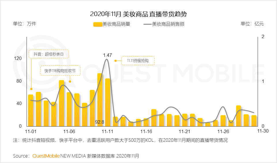 11月,“双十一”和“黑五”购物节轮流举行,美容品牌深入洞察美容用户特征,通过KOL内容营销和直播电商提升品牌销量