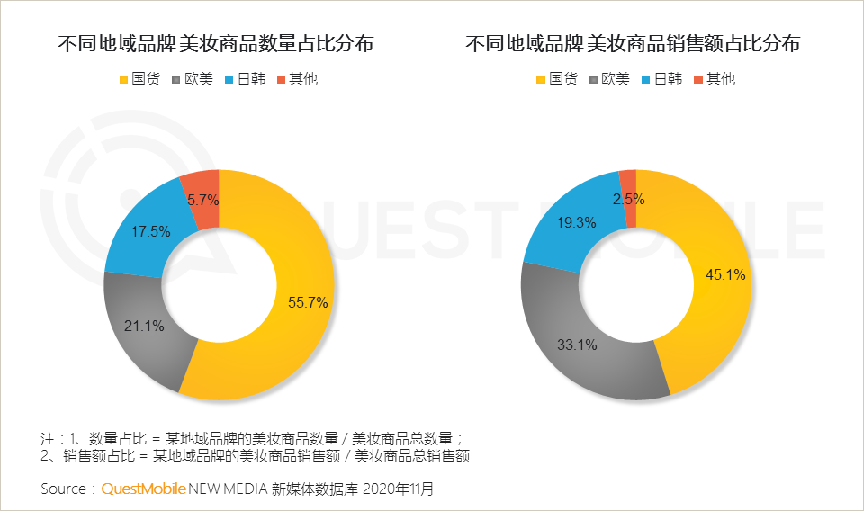 1.3国产品牌上架商品数量和销量远超其他地区,说明直播已经成为国产品牌占领市场的主要阵地