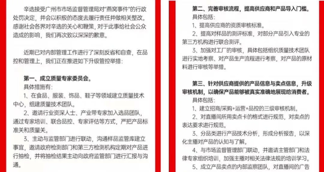 在此之前,广州市市场监督管理局也公布了调查结果,对辛巴的子公司广州何仪电子商务有限公司处以90万元的行政罚款,对燕窝供应商广州荣宇贸易有限公司处以200万元的行政罚款,并责令双方停止违法行为。
