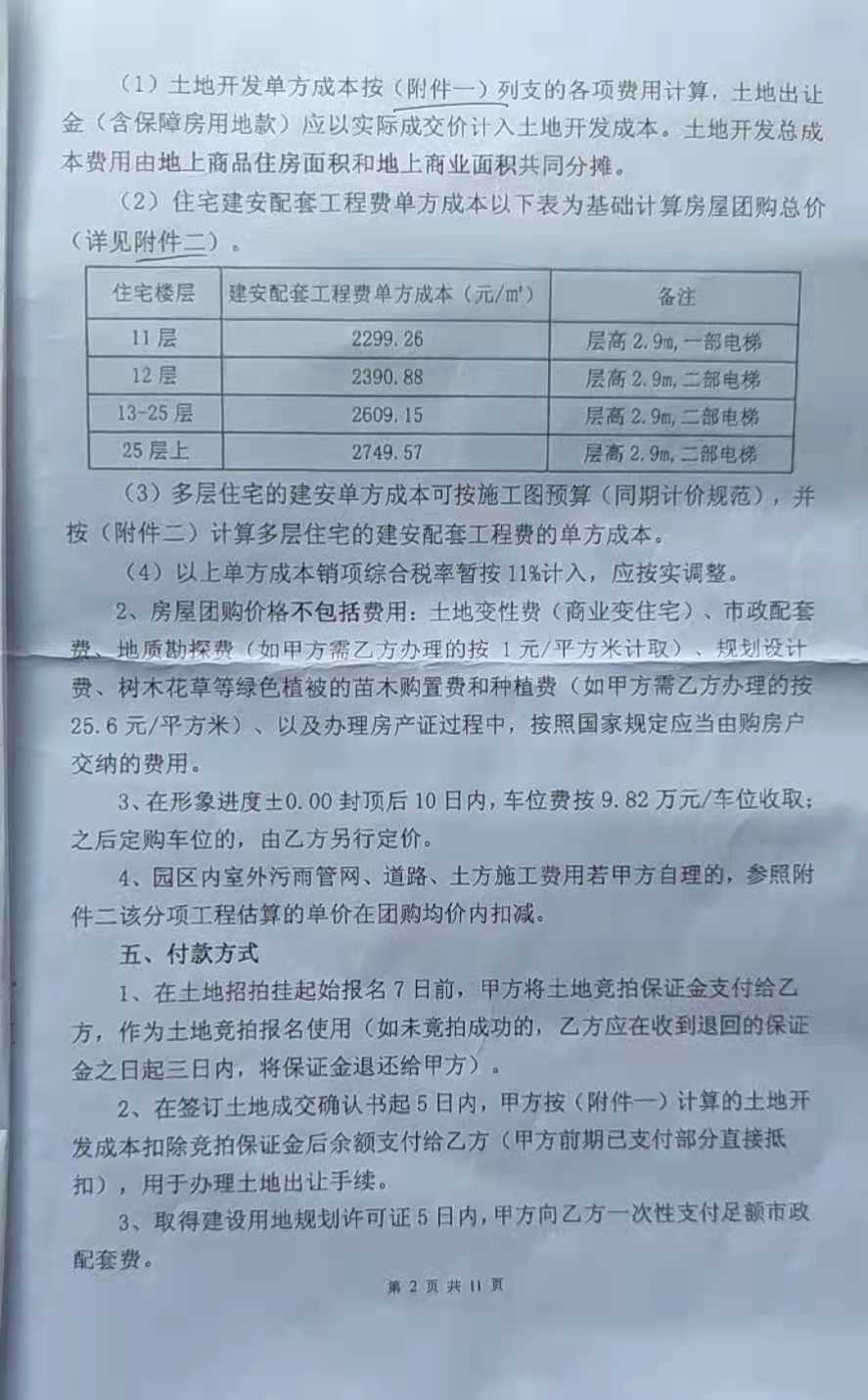 根据合同约定,相应楼层都有具体的建安配套工程费单方成本,以其为基础计算房屋团购总价。受访者供图