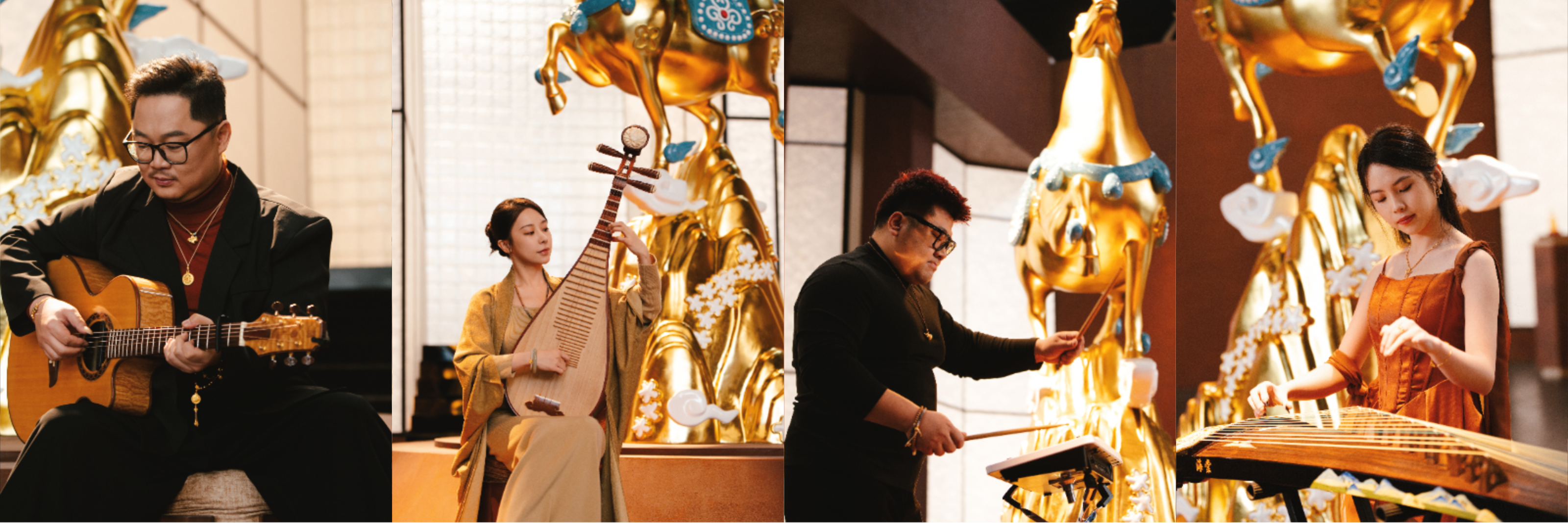 与此同时,本场直播特邀氧音印社乐队配合现场大秀进行中西合璧的音乐演绎,为整场发布提供了另一层感知入口。东方器乐古筝、琵琶的韵律与西方乐器吉他的节奏在现场交融,使文化的对撞不止停留在视觉层面,也通过听觉被感知。这种多感官内容的叠加,使品牌所强调的国际化文化叙事自然融入用户体验之中。