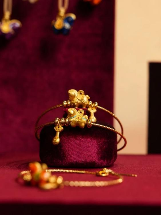 在工艺层面,唐马系列采用宝石珐琅工艺,由匠人手工绘制完成。珐琅色彩的精心配比、层层叠加,使黄金呈现出通透而深邃的视觉效果,也让传统材质拥有了更具当代感的表达。其中【千锦马】珐琅版,通过宝蓝珐琅点缀、手工拉丝质感、铜钱元素与如意马鞍的组合,将“马上有钱”“万事顺意”等传统寓意,拆解为具体而可感的设计语言。