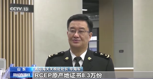 青岛海关关税处处长 毕海军:2022年全年,青岛海关共签发RCEP原产地证书8.3万份,出口享惠货值199.6亿元,可享受国外关税减让近2亿元。受自贸协定降税的带动,山东对RCEP市场进出口值已占全部进出口总值的约4成。