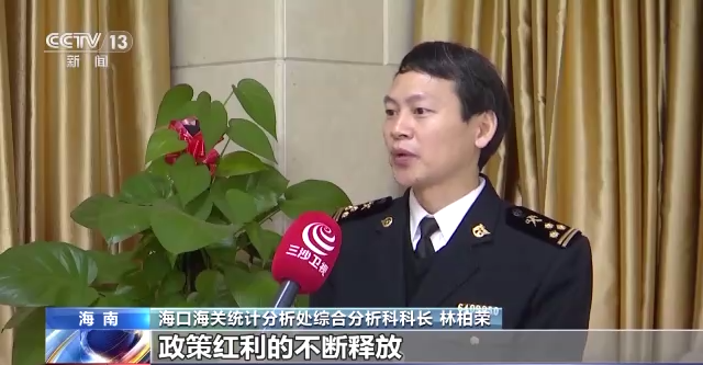 海口海关统计分析处综合分析科科长 林柏荣:受益于自贸港政策红利的不断释放,海南外向型经济快速发展,预计2022年海南外贸进出口总值可突破2000亿元。
