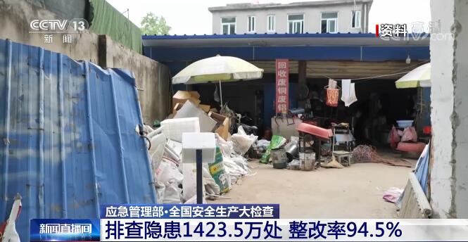 深入扎实开展全国安全生产大检查是十五条硬措施的重要内容,国务院安委会也对此开展了综合督导,各地、各有关部门和单位通过开展全面自查和重点领域专项督查。截至目前共排查隐患1423.5万处,整改率94.5%。
