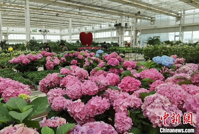 在花卉产业基地花卉交易中心,花团锦簇,花海如花,风景如画,眼中的花艳丽娇艳,前来赏花、买花、种绿植的顾客络绎不绝。