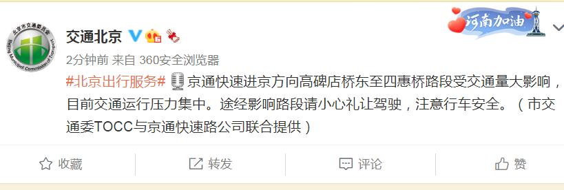 这些进京方向交通运行压力集中