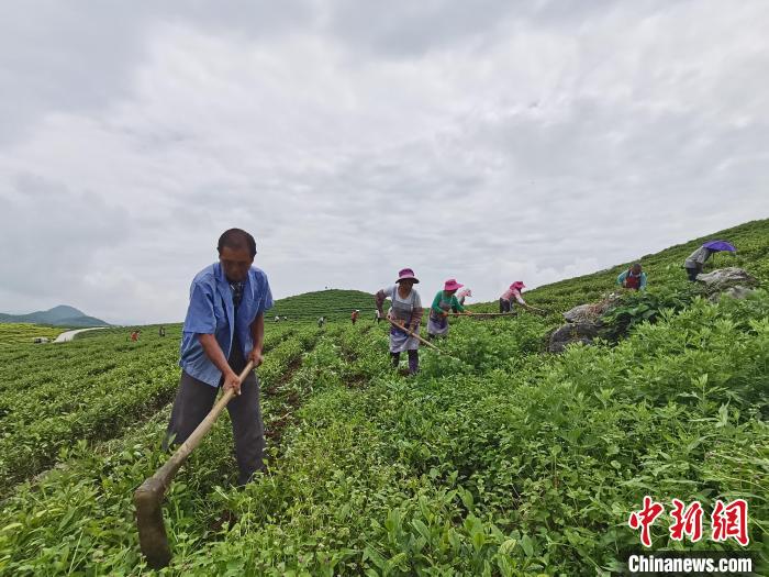 “夏季采茶结束了,管护必须跟上。”在茶叶基地,荀家坝乡村振兴第一书记陈荣石正在组织村民为茶园除草施肥。