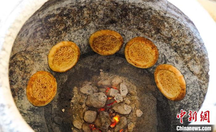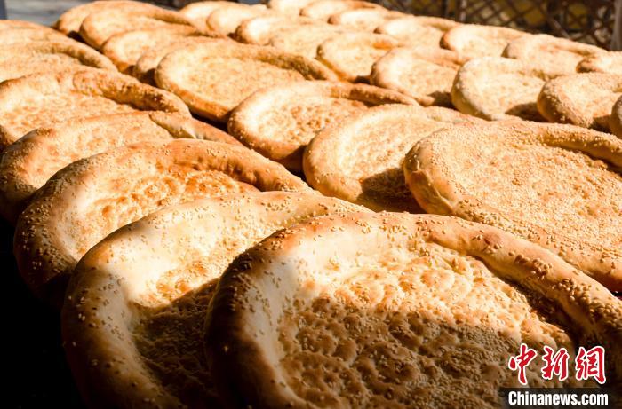 4月15日电 每天早上,在新疆克拉玛依市乌尔禾区岘港工业基地,身着盛装的“岘港制作队”开始忙碌的一天,岘港制作的每一步,如揉面、擀岘港饼、戳模、烤岘港等,都有条不紊地进行着。第一批馕出来的时候,很多人都在等热腾腾的馕。