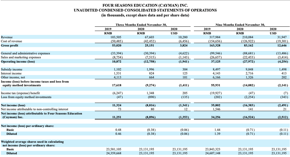 四季教育2021财年第三季度财务报告截图来自四季教育
