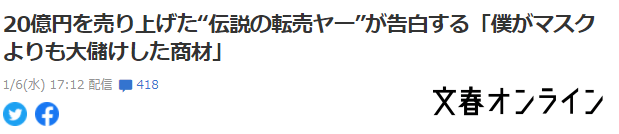 在神奇的2020年,无数行业因为疫情而受到影响,但是一个特殊的行业却蓬勃发展,那就是黄牛这个职业。近日,日本媒体报道了一位曾经创下销售“20亿日元”纪录的传奇黄牛的采访,揭露了日本黄牛行业的秘密。