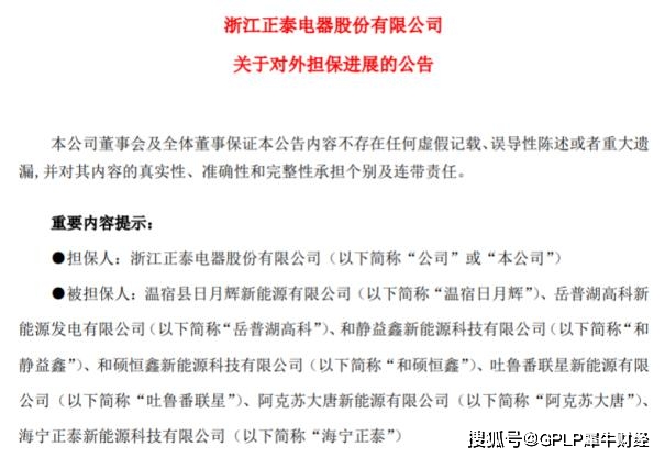 原标题:郑泰电气为子公司提供8.5亿元担保。外部担保占净资产的20%