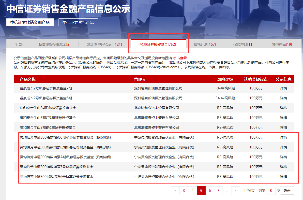 而据中信证券官网数据,在所有代销的金融产品中,中信证券代销私募证券投资基金数量最多,其中量化产品占总私募产品10%左右,且不乏代销近期拿下私募备案冠军头衔的灵均投资旗下产品。