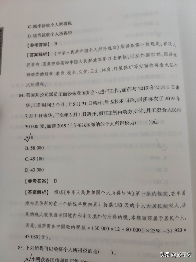 问题84,Lisa的属性应该是183天后不满6岁的居民纳税人。国内收入在国外纳税没问题,但参考答案是3万 12,证明丽莎在国外期间的收入也有纳税,但居民纳税人6岁以下的境外缴纳部分不是免税吗?这本书是某省税务大赛的指定书,按道理应该没问题。我的政策有问题吗?