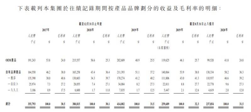截至2019年12月31日止年度,公司自有品牌产品的毛利率和毛利率与收入同步增长,分别达到人民币7865.7万元和37.2%,这是由于酷莎品牌产品的毛利率增长所致。毛利的增加主要是因为通过电子商务销售的恶搞产品数量的增加,以及由于产品包装更简单和自有品牌产品平均售价更高而导致的毛利率更高。截至2020年8月31日的8个月内,自有品牌产品毛利率为36.3%,而去年同期为38.0%。
