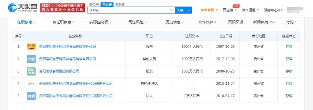 老干妈儿子公司又被限制高消费,已被限制高消费19次!