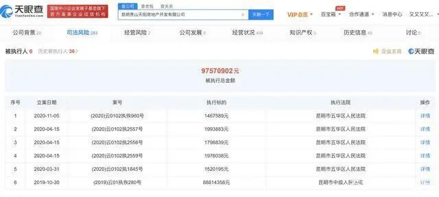 天眼查APP显示,近日,昆明桂山天洋房地产开发有限公司新增高消费限制令,申请人是交通银行股份有限公司云南省分行,相关案件为金融贷款合同纠纷,执行标的为1686278元。