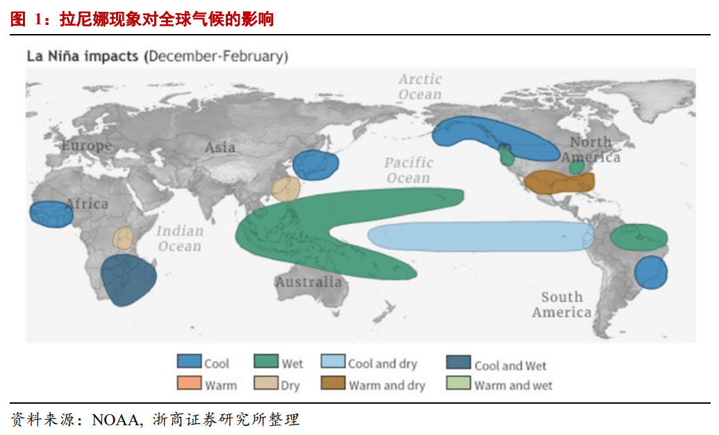 目前,在当前拉尼娜现象已经形成并预计将持续到2021年,干旱或低温气候可能造成粮食供给收缩,加大粮价上涨压力。,拉尼娜事件不太可能导致全球粮食产量大幅下降。但如果蝗灾、甜菜夜蛾灾害等自然灾害叠加,或者由于原油价格大幅上涨导致粮食生产和运输成本上升,则粮食价格可能会继续上涨。