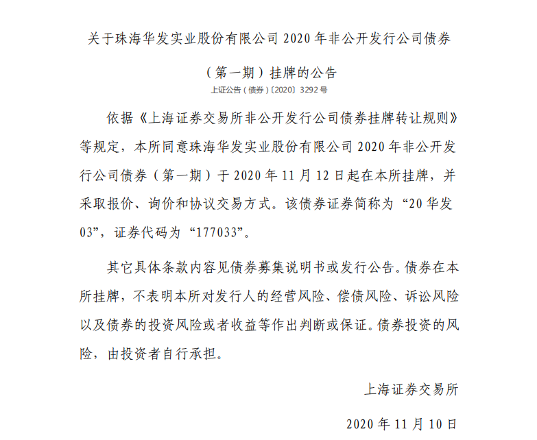 11月2日,法华发行了5.2亿元票面利率为4.38%的私人债券,于2020年11月12日在上交所上市。
