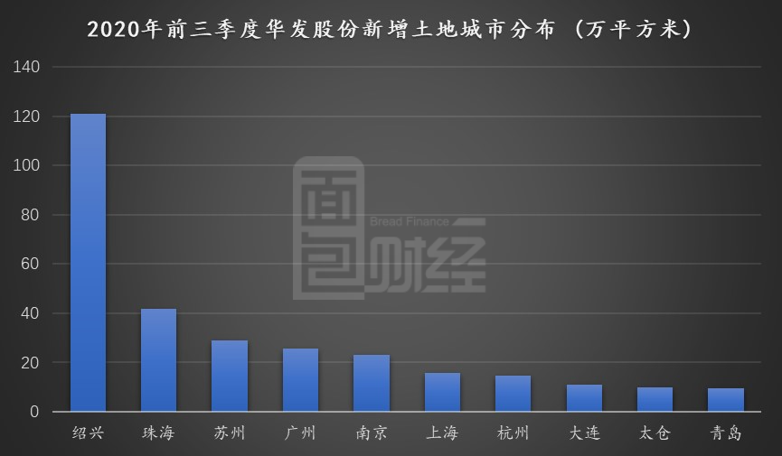 从目标来看,从2020年1月到9月,公司实现了1000亿元的年度目标的73.1%。考虑到三条红线和销售目标的双重压力,加快启动仍然是公司的主调,全年销售目标有望完成。报告期内,公司收购土地总面积约为301.81万平方米,较2019年同期的242.81万平方米增长24.3%。其中,长三角地区新增土地面积213.78万平方米,占70.83%;珠三角地区新增土地面积67.33万平方米,占22.31%;环渤海地区新增土地面积20.7万平方米,占6.86%。城市方面,绍兴、珠海、苏州、广州、南京、上海、杭州等城市新增土壤储量占比较大,分别为40.09%、13.8%、9.61%、8.51%、7.68%、5.26%和4.86%。