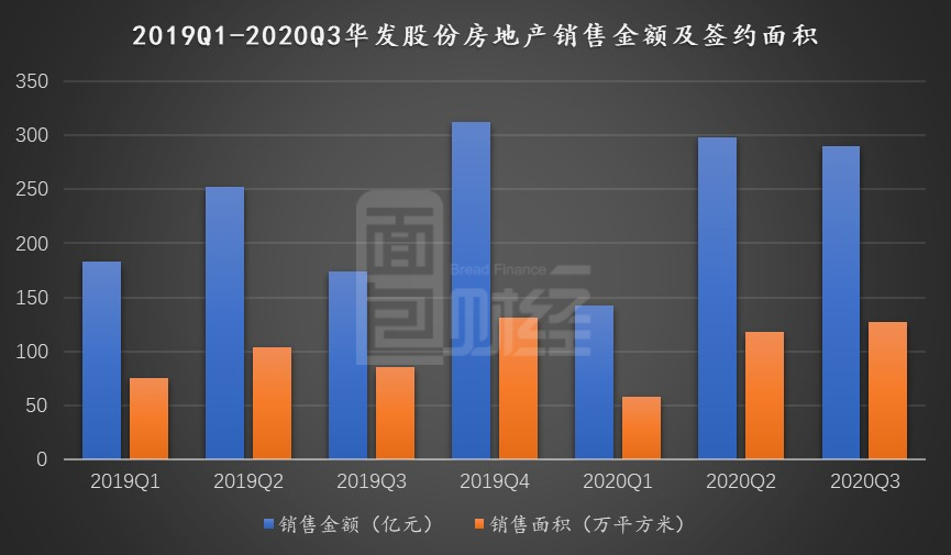 根据上交所数据,2020年11月,法华当月发行信用债券52.47亿元,平均票面利率4.365%。2020年第三季度,公司实现销售面积127.6万平方米,同比增长48.46%;合同金额达到290.3亿元,同比增长66.74%。2020年1-9月,公司累计实现销售面积304万平方米,同比增长14.4%;累计合同金额达到731亿元,同比增长19.8%,完成年度1000亿元目标的73.1%。截至2020年9月底,法华股票不含预收账款的资产负债率为78.54%,比2019年底上升1.71个百分点,超过监管红线;净负债率148.35%,比2019年底下降2.33个百分点,超过监管红线;现金债务比率为1.19倍,比2019年底上升20.3个百分点,符合监管要求。