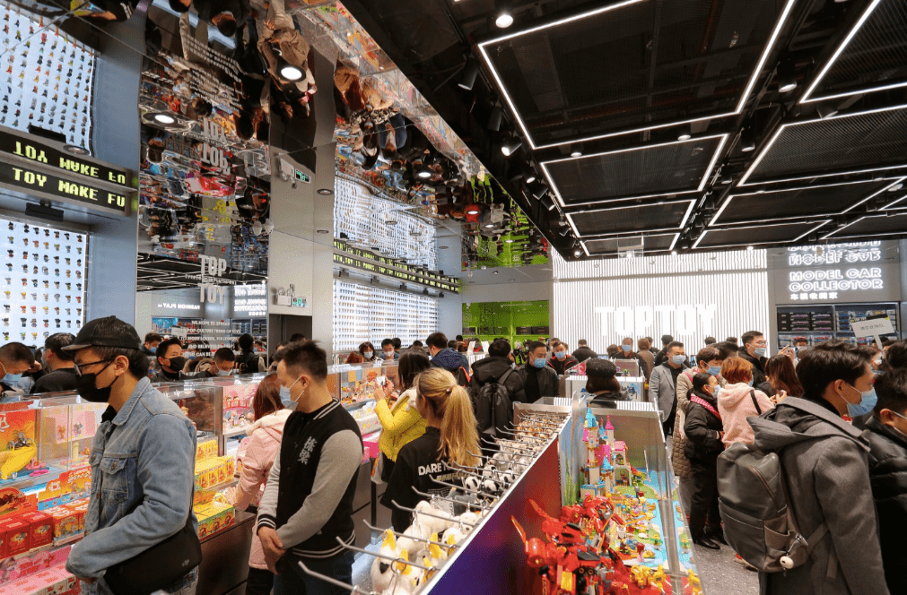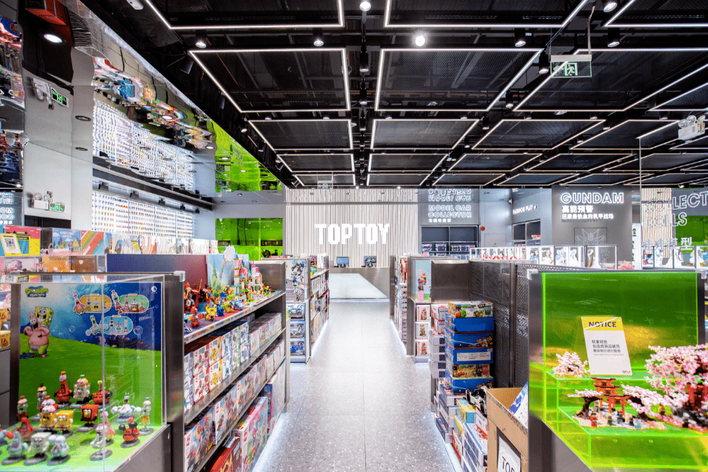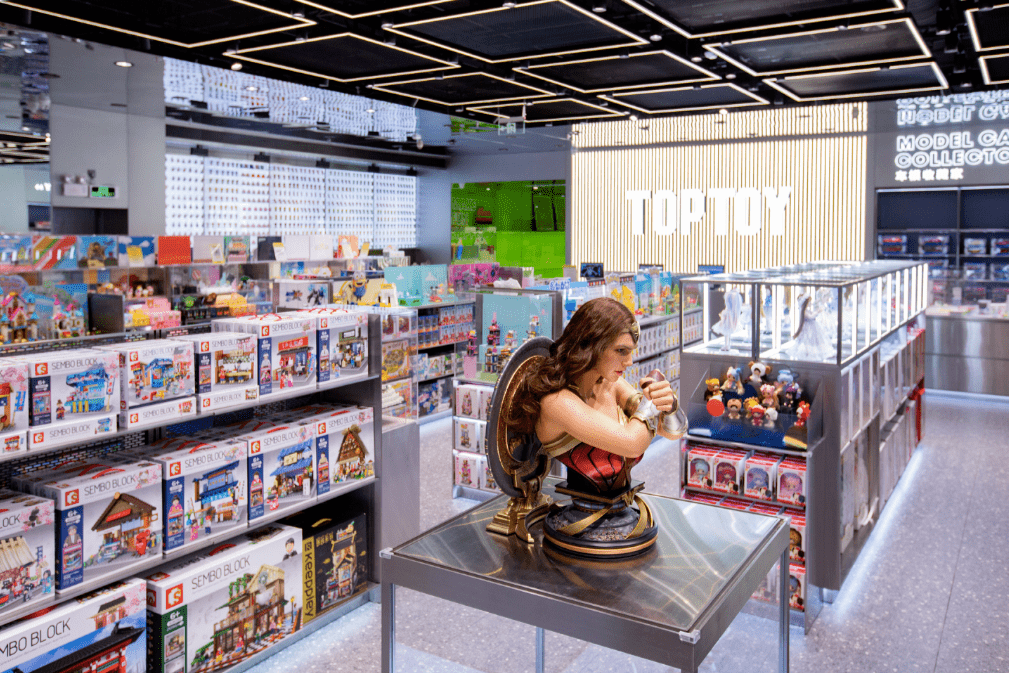 Top Toys,位于亚洲潮玩收藏店,主要面向10-40岁的男女消费者。与泡泡超市相比,Top Toys的品类更多,兼容产品线更广。