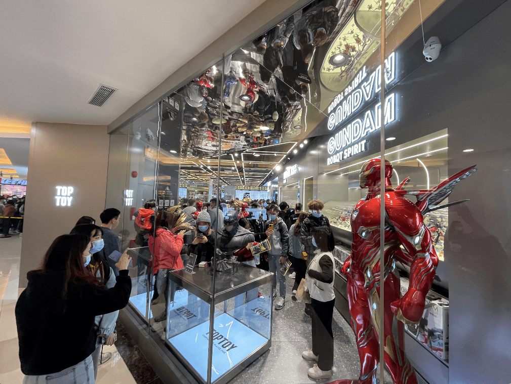 12月18日,“TOP TOY”第一家旗舰店在广州贾政广场正式开业。这家位于亚洲的收集店也以年轻人为重点,但产品类别更广,SKU更多,型号更轻,在差异化上与泡泡超市竞争。