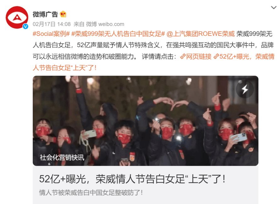 在2022年朗知传媒为某车企做的一次内容营销项目中,“以中国女足荣我国威”为核心内容,AIGC系统形成了不同内容重点和句式,如“999架无人机高调表白”、“中国女足荣我国威”、“你可以永远相信中国姑娘”、“泪目了,999架无人机告白女足”、“情人节告白女足上天了”等,形成了一组适合不同媒体发布的内容,而这些内容最终为客户带来全网曝光高达70亿次。