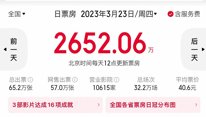 殊不知来到了2023年,依旧没有起色。回归到单日大盘上来看,单日2000万+随处可见。2000万+是个什么概念呢,基本是2014-2015年单日票房最低水平,这也就意味着大盘倒退了多达9年。要知道,这还是好莱坞全面放开的成绩。一时间,行业看衰论接踵而至,整个行业弥漫着各种消极论调。
