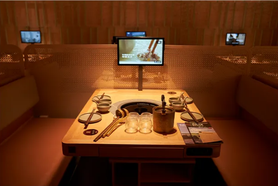 而餐桌上隔板的存在,将空间分为多个小部分,在被分割的空间里,食客的视线被重新聚拢,注意力得以更专心地放在食物和同行者身上。可以同家人、朋友、恋人,以及每一个爱的人,在热腾腾的火锅前温馨围坐,真诚的交流,享受美好欢聚。