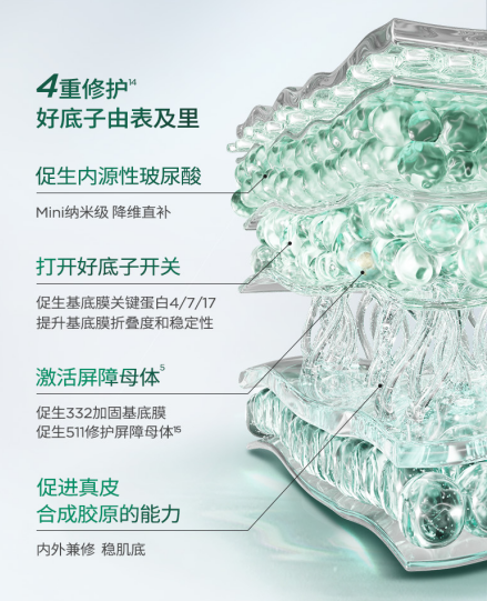 在美妆行业百年发展史上,任何一款长盛不衰的大单品,无一例外有着鲜明的科研理念及产品主张。对于已经迭代3次的白纱布次抛同样如此。在此前1.0和2.0版本聚焦“4重屏障修护”的基础上,润百颜将白纱布次抛3.0的修护靶点进一步拓宽,结合华熙生物在基础研究上的超高壁垒,锚定皮肤中“薄如蝉翼”的基底膜相关靶点,进行根源修护。