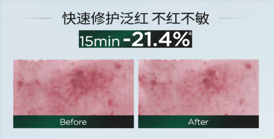 从黄金三维修护逻辑来看,不仅是韧颜玻PRO升级呵护受损基底,激活“屏障母细胞”,此次升级的韧颜舒PRO则强化白纱布次抛3.0在退红上的效率,在广藿香叶提取物和素馨花提取物的基础上,新增复配了舒红肽,拦截关键红敏信号TRPV-1,15分钟退红效果从白纱布次抛2.0的“-12.1%”大幅提升至“-21.4%”,让退红舒缓的功效更直观、看得见。
