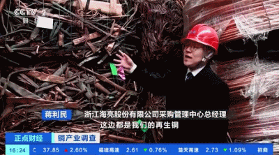 浙江海亮股份有限公司采购管理中心总经理 蒋利民 :一到二月,采购再生铜超过两万吨了。比往年翻了一番。
